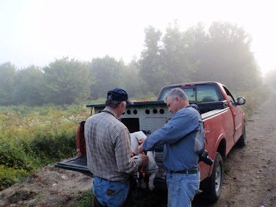 The last dog on the truck was Ginger III who is still getting her sea legs when it comes to grouse and woodcock. So, she got to run in a spot where we know the birds lay right along the edge of the gravel road. She flash pointed and bumped the first woodcock while we were still standing by the trucks. Down the road aways she did the same on another one. Tim and I were standing out on the road and the bird came flying towards us and landed in the bushes in front of us. As G-III hunted her way towards us she found another one and chased it right towards us. Tim tracked it with his imaginary shotgun and then turned just in time to see and probably feel the wingbeat of the bird that had landed in front of us. He literally ducked out of the way to avoid being impaled by that long beak. It was the best laugh I’d had in a long time. G-III ended her short run with a grouse contact. To give us a morning total of 19 grouse and 18 woodcock. It wasn’t a repeat of Friday but it was a darn good morning where all six dogs had good opportunities on wild birds.